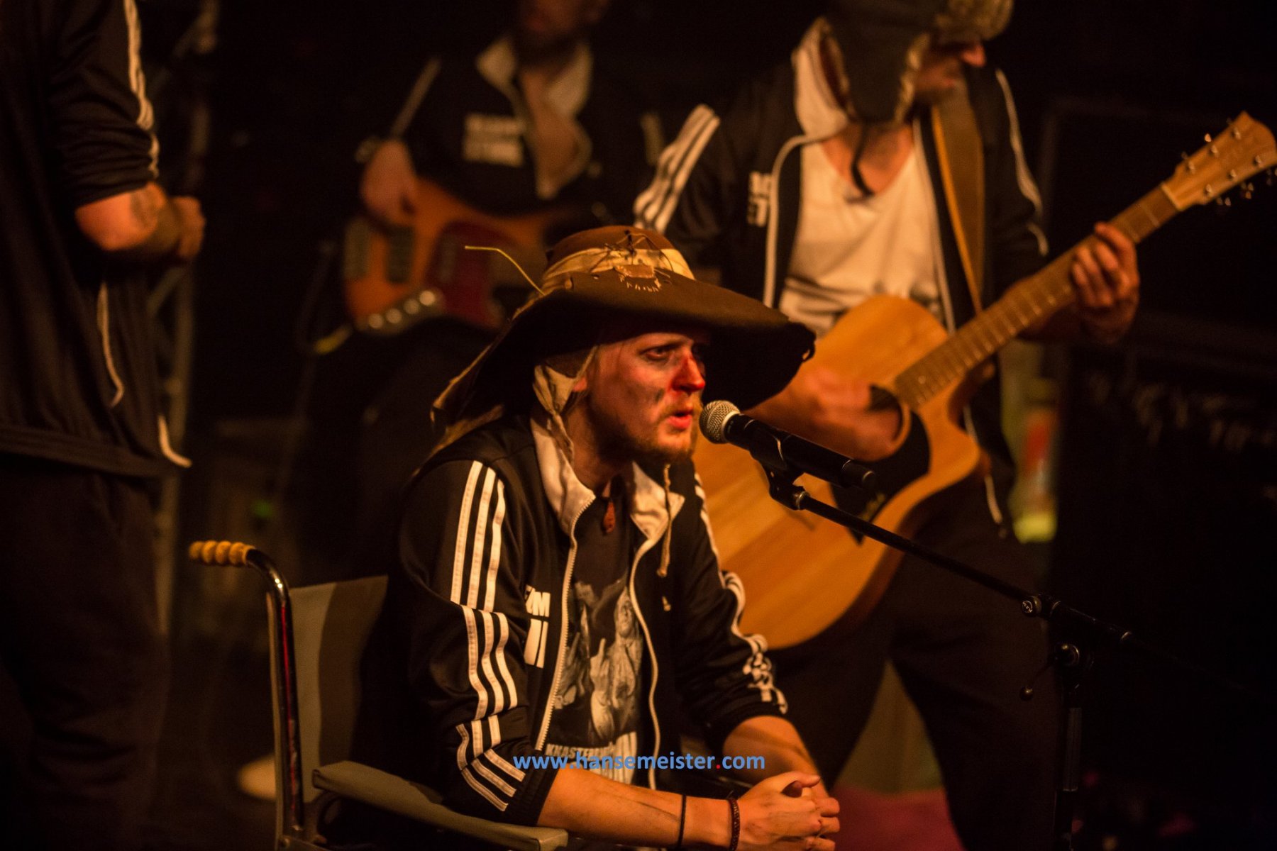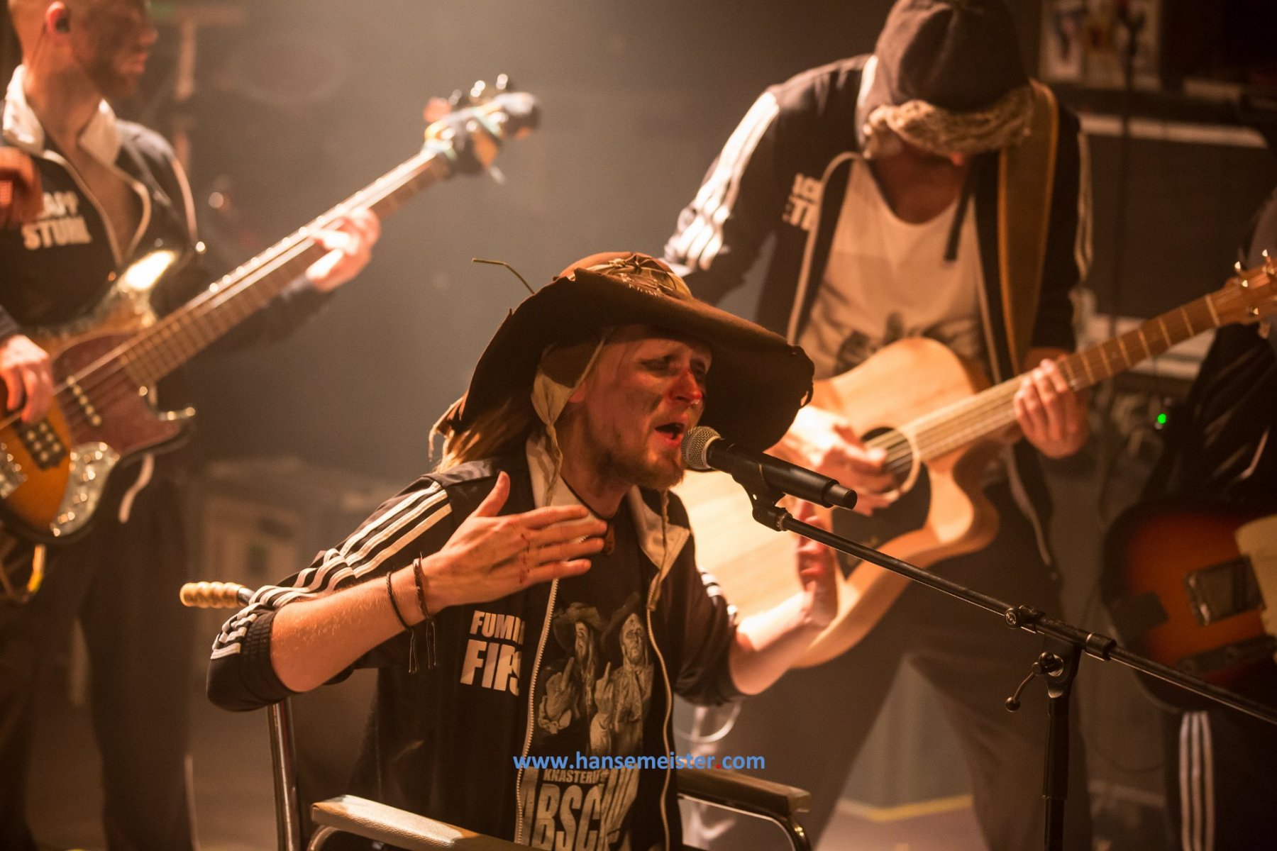 Dabei treten die Musiker in historisch angelehnten Kostümen auf und schlüpfen in die Rollen von erfolglosen und zweifelhaft sympathischen Taugenichtsen und Halunken, die eine frühneuzeitliche Gosse bewohnen, was in den selbstironischen Texten der Frontmänner „Hotze Knasterbart“ und „Fummelfips Knasterbart“ wortgewaltig und zum Schreien komisch illustriert wird.