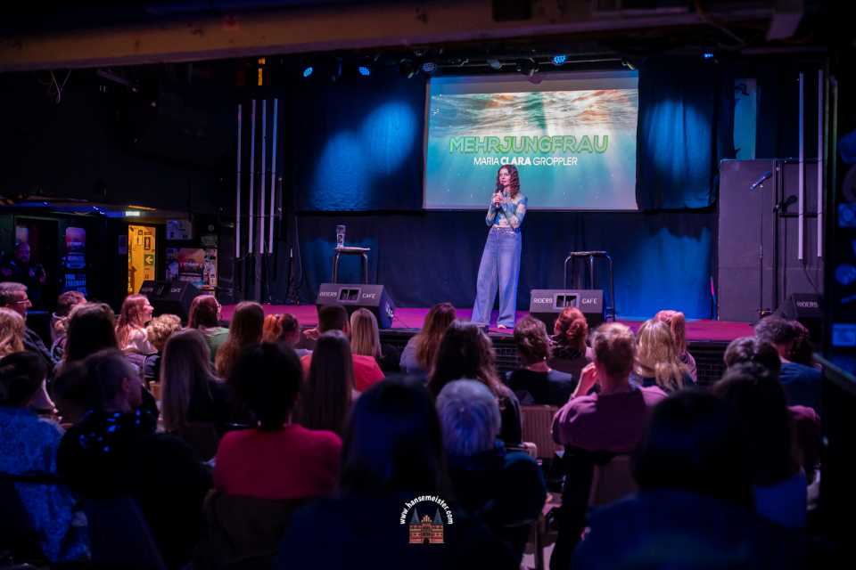 Das Riders Café bot hierfür den idealen Rahmen. Die intime Nähe zwischen Bühne und Publikum ist Maria Claras Spezialität. Immer wieder suchte sie den direkten Kontakt zu den Gästen in den ersten Reihen, improvisierte schlagfertig und baute die Lübecker Eigenheiten charmant in ihr Set ein. Diese Spontaneität machte den Abend zu einem einmaligen Erlebnis, das weit über ein klassisches Stand-up-Programm hinausging.
