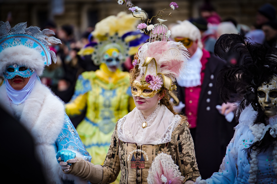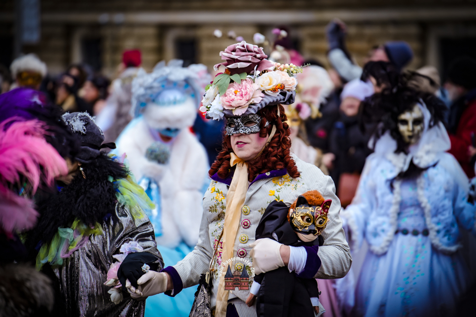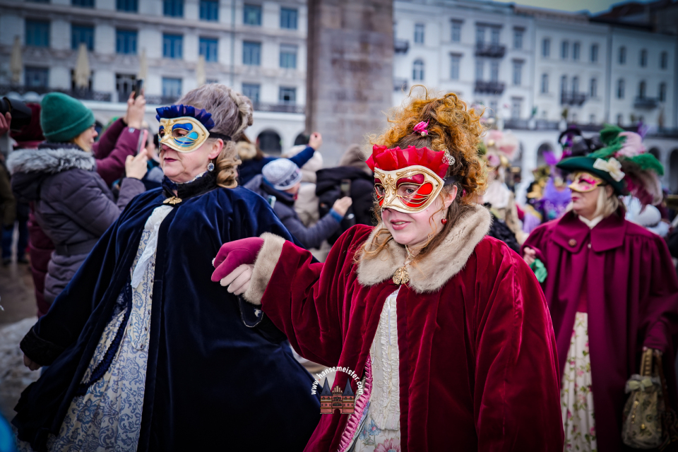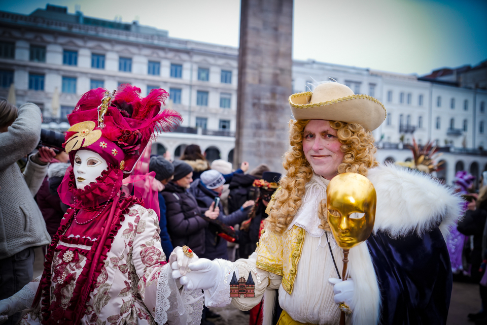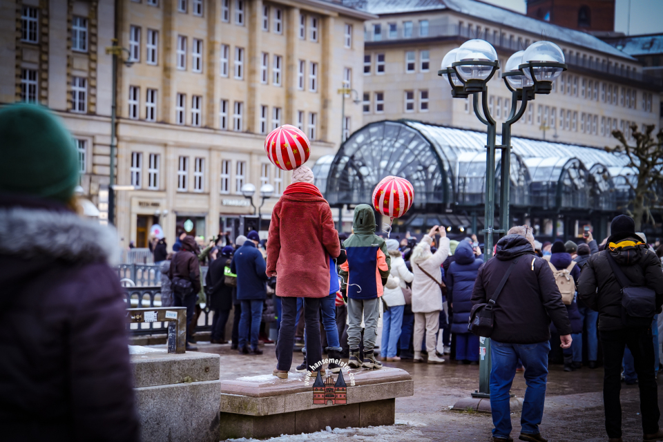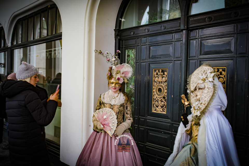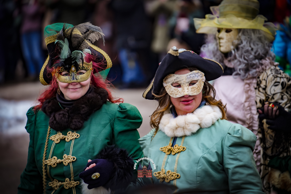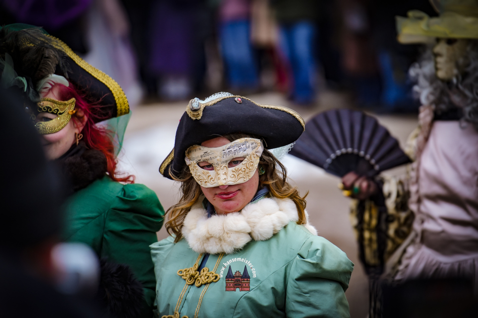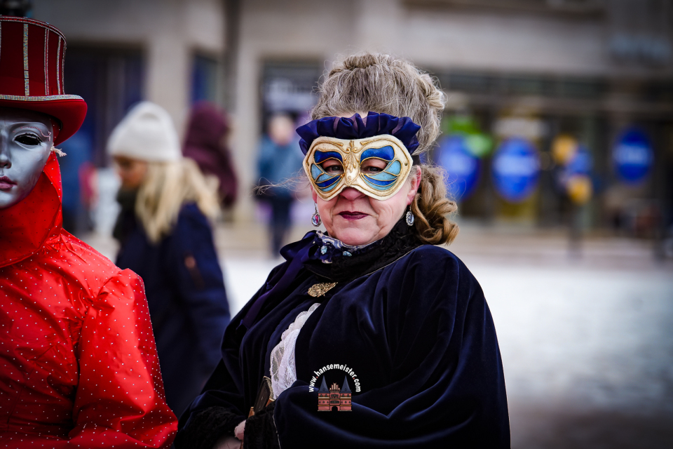 Bereits am späten Vormittag flanierten die prachtvoll gekleideten Damen und Herren durch die Colonnaden. Mit aufwendig gestalteten Masken, historischen Gewändern und detailreichen Accessoires entführten sie das Publikum optisch direkt nach Venedig. Die winterliche Kulisse Hamburgs verlieh dem Spektakel dabei einen ganz eigenen, besonderen Charme.