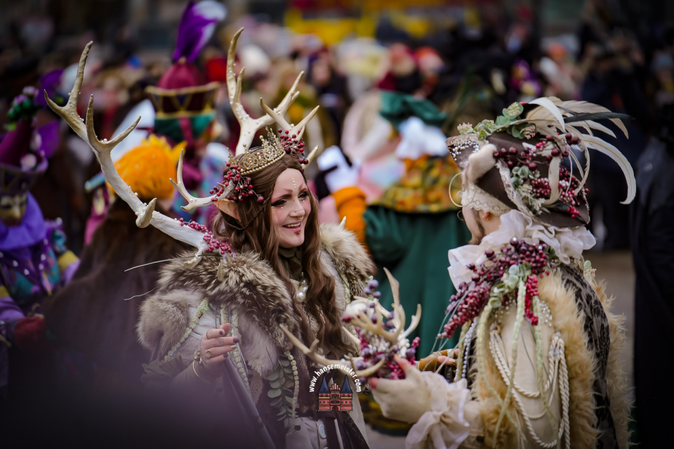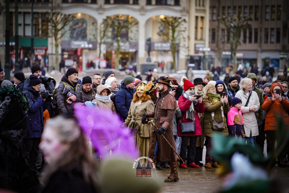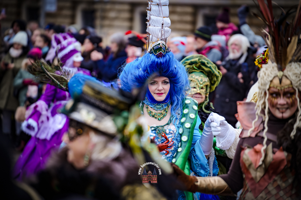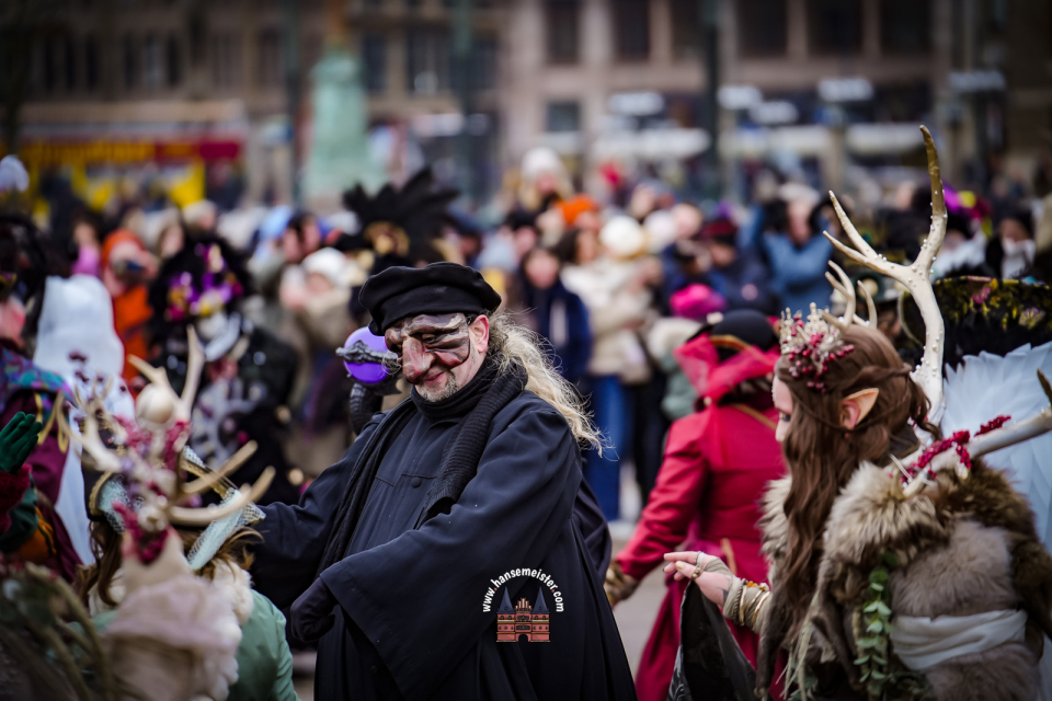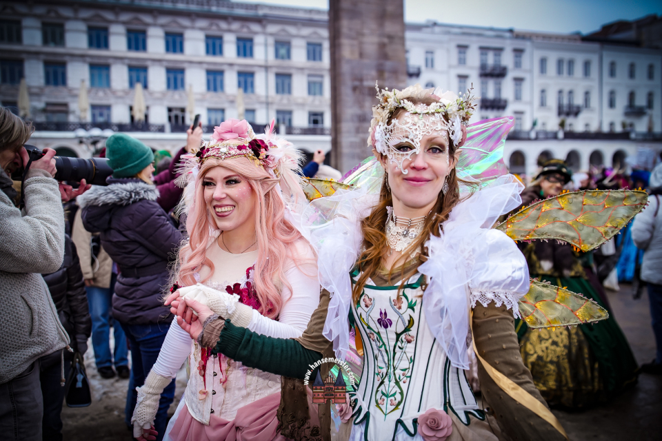 Im weiteren Verlauf des Tages setzte sich der farbenfrohe Zug in Richtung Alsterarkaden fort. Zahlreiche Passanten blieben stehen, zückten Kameras und Smartphones und ließen sich von der märchenhaften Szenerie verzaubern. Der Maskenzauber bot dabei nicht nur perfekte Fotomotive, sondern auch viele persönliche Begegnungen, bei denen die Akteure bereitwillig für Gespräche und Erinnerungsfotos zur Verfügung standen.