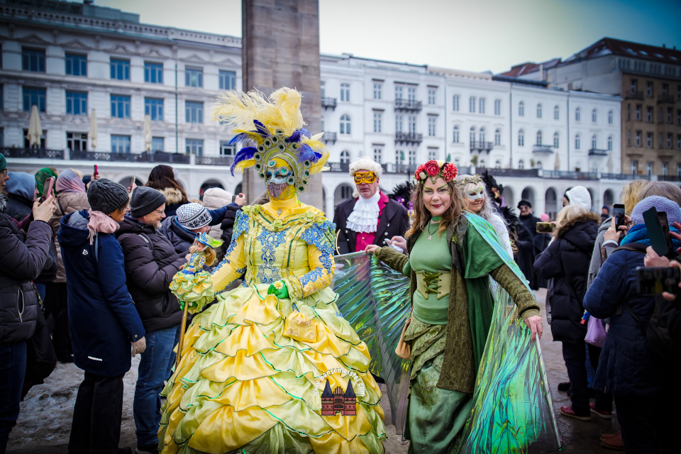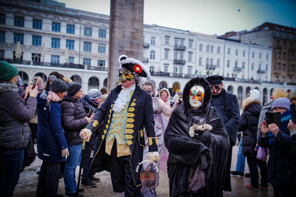 Am Samstag, den 31. Januar 2026, verwandelte sich die Hamburger Innenstadt rund um die Alster in eine Bühne voller Eleganz, Fantasie und venezianischem Flair. Der traditionelle Maskenzauber lockte zahlreiche Besucherinnen und Besucher in die Colonnaden, an den Jungfernstieg und in die Alsterarkaden, wo kunstvoll kostümierte Maskenträger für eine einzigartige Atmosphäre sorgten.
