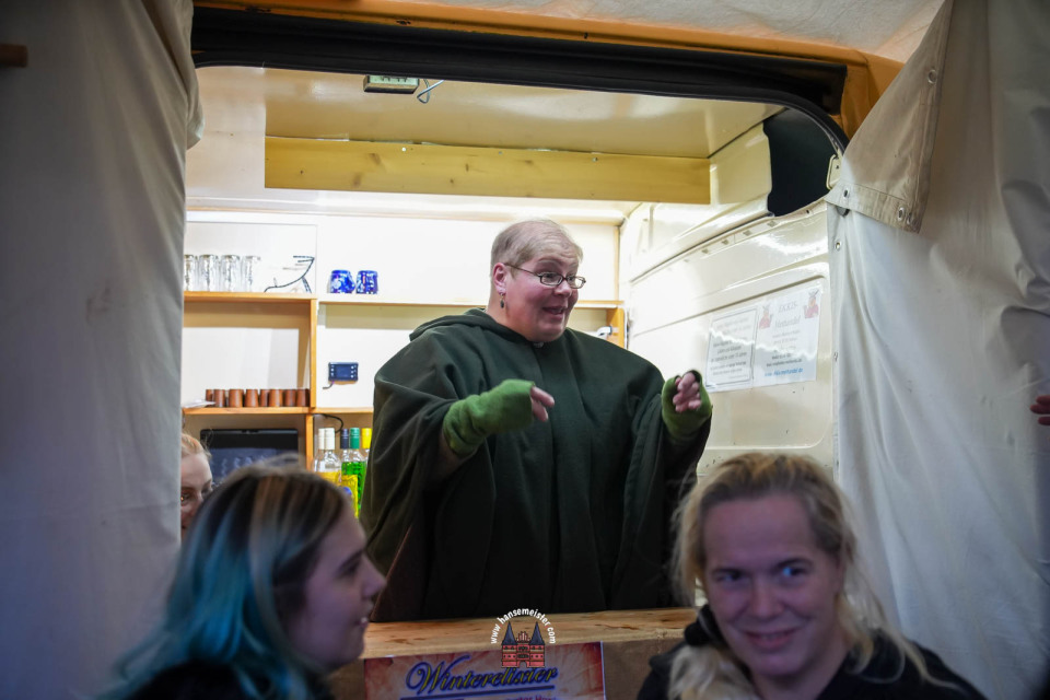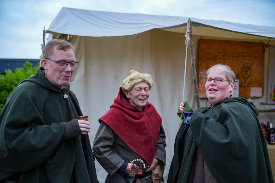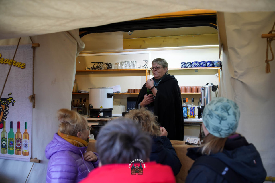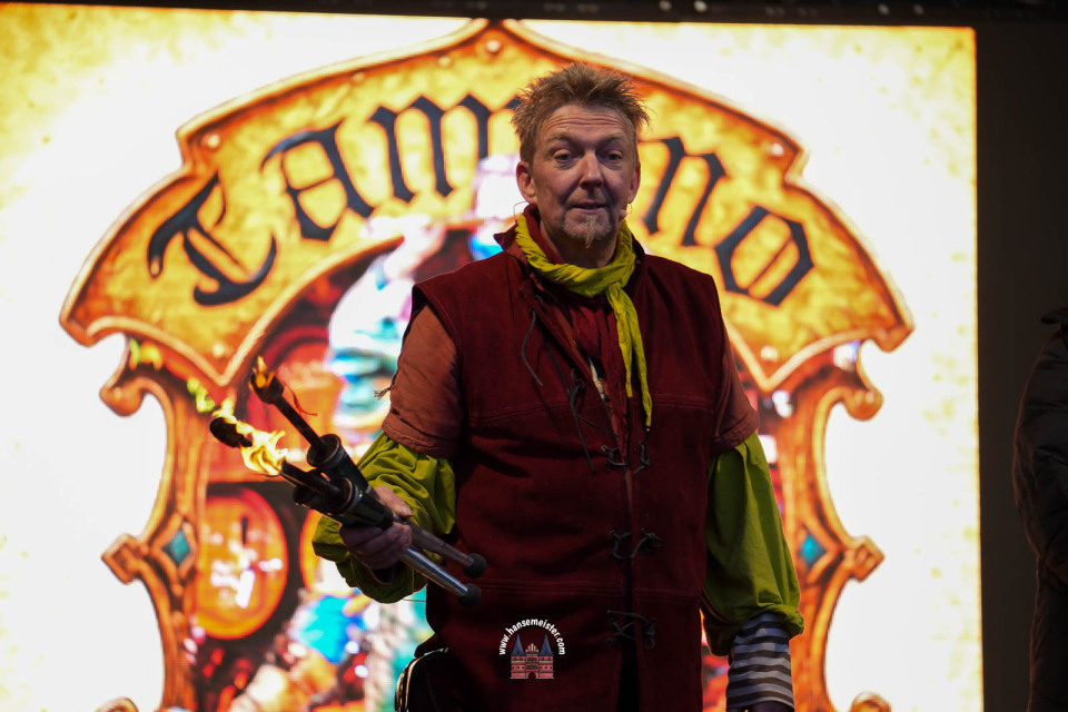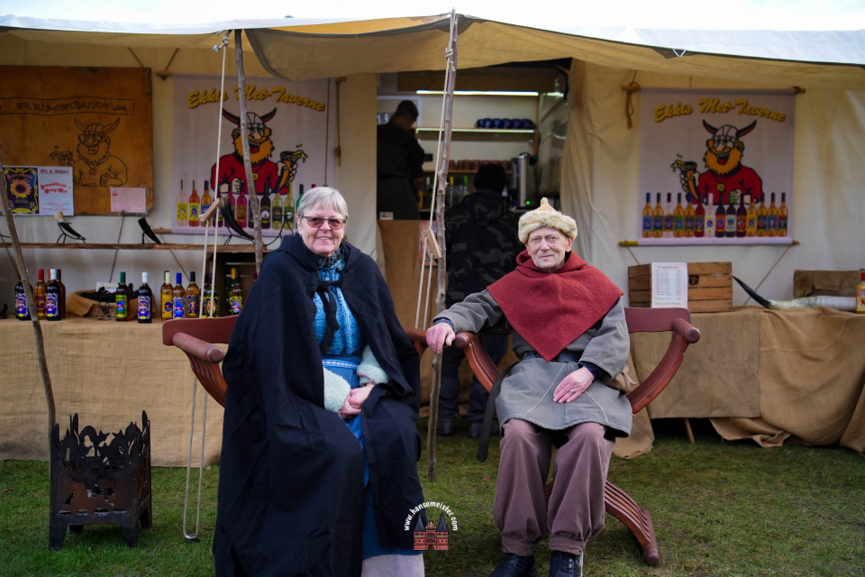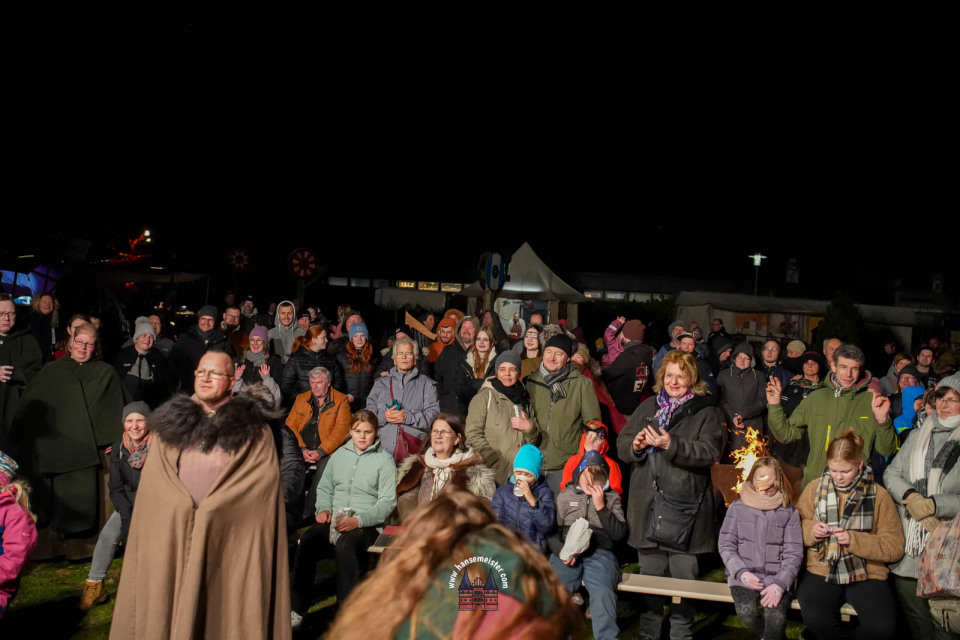 Bereits zum Einbruch der Dämmerung füllte sich das Gelände rund um die Bühne und den Marktbereich. Fackeln und Feuerstellen tauchten das Resort in warmes Licht, während Händler handgefertigte Waren, Met und herbstliche Spezialitäten anboten.