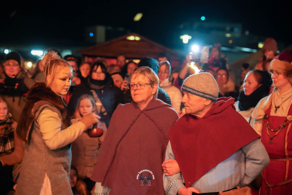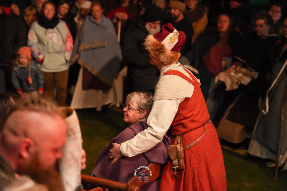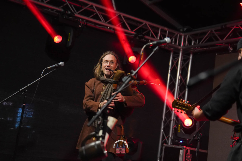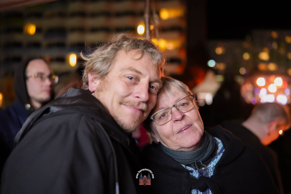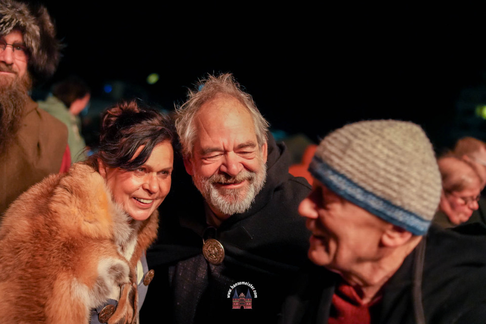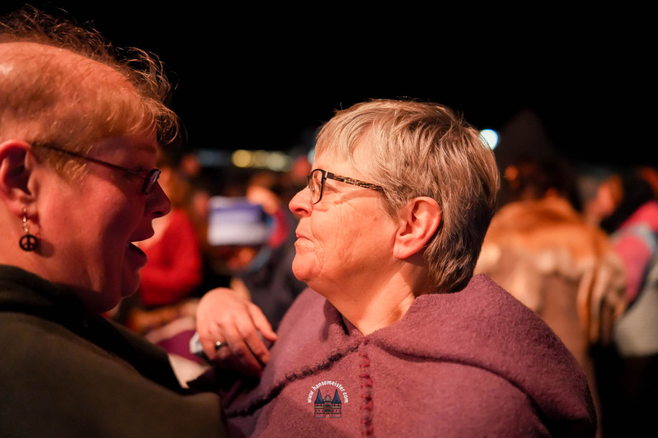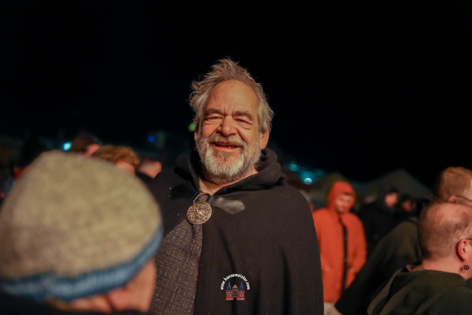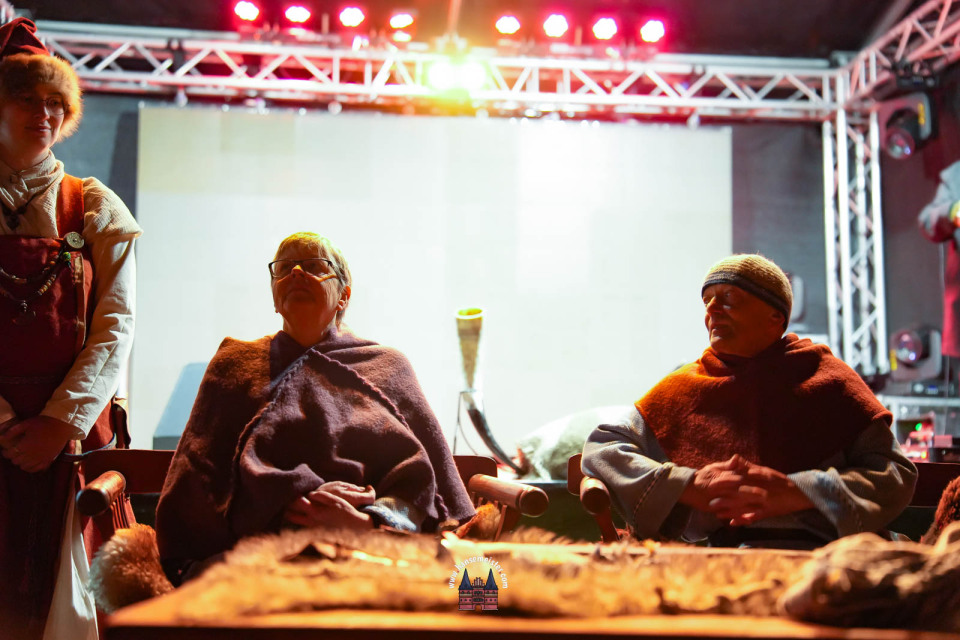 Ein besonderer Moment folgte direkt vor der Hauptbühne: Eine feierlich inszenierte Wikingerhochzeit zog die Aufmerksamkeit des Publikums auf sich. In historischer Gewandung gaben sich Karin und Met Ekki das Ja-Wort, begleitet von Musik von Frisia non Cantat und den Rufen der Menge. Der Flammenschein und die salzige Meeresluft machten die Zeremonie zu einem emotionalen Höhepunkt des Abends – kraftvoll, archaisch und zugleich zutiefst romantisch.