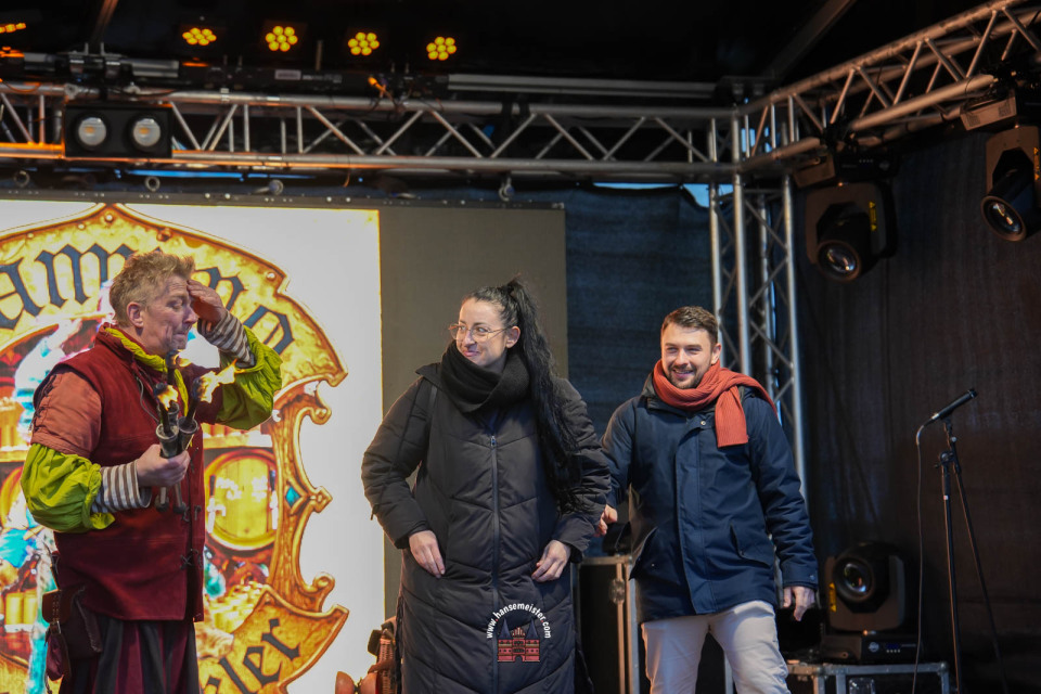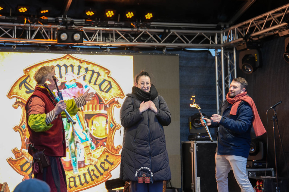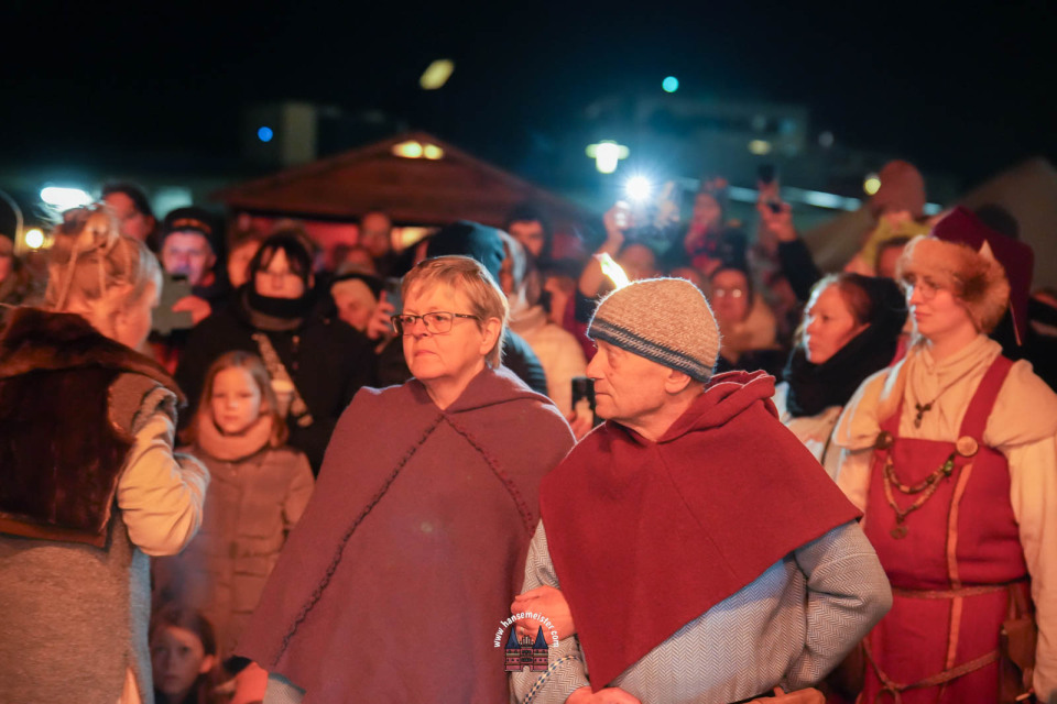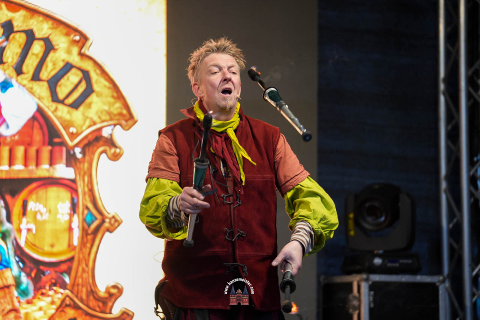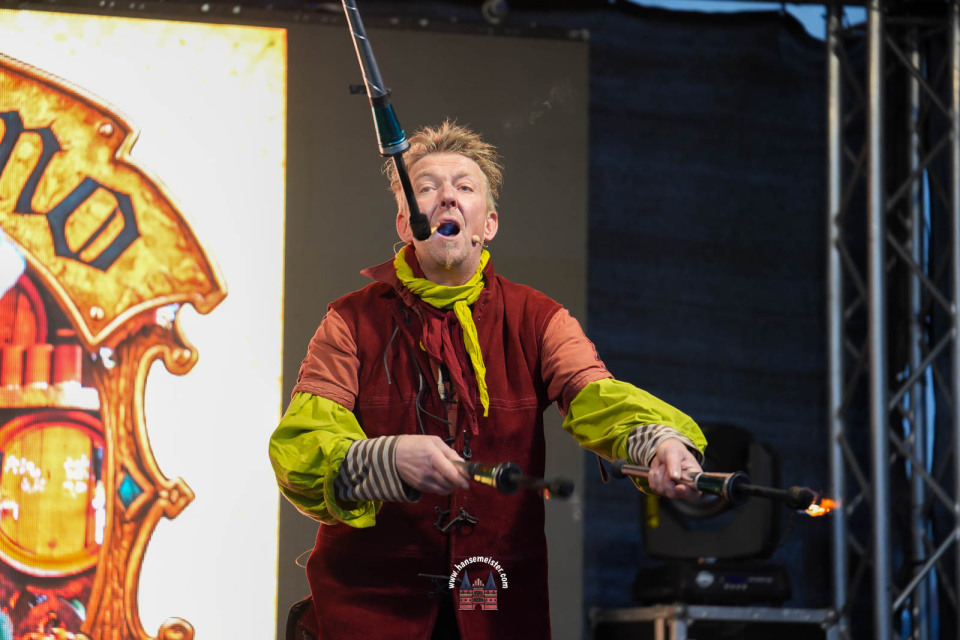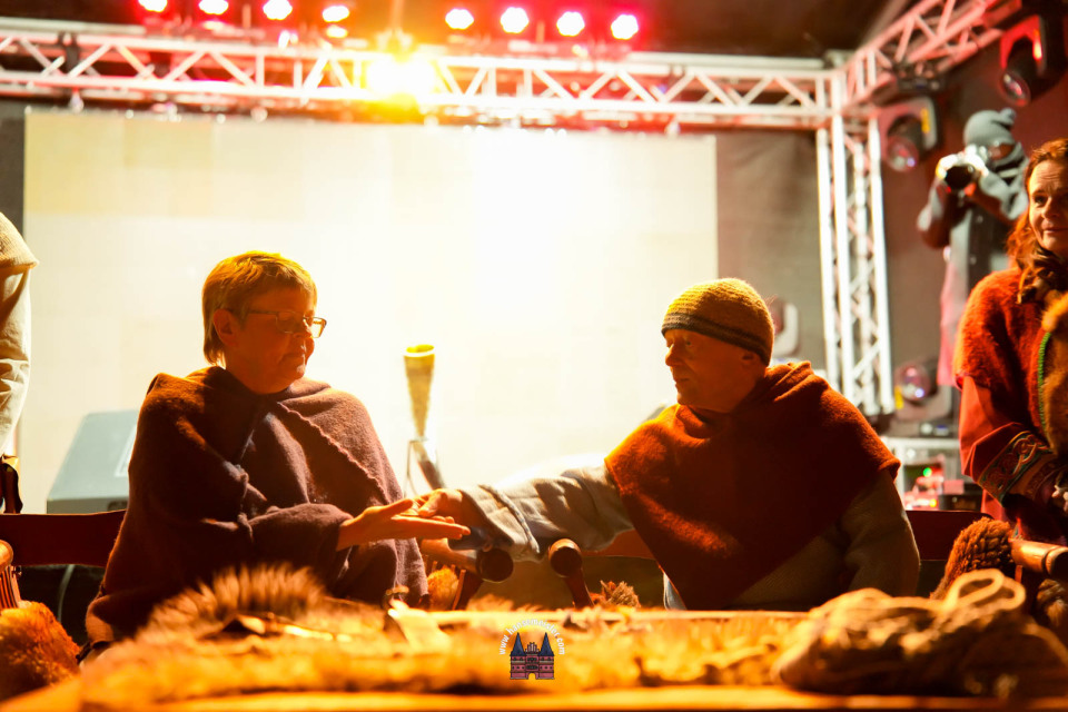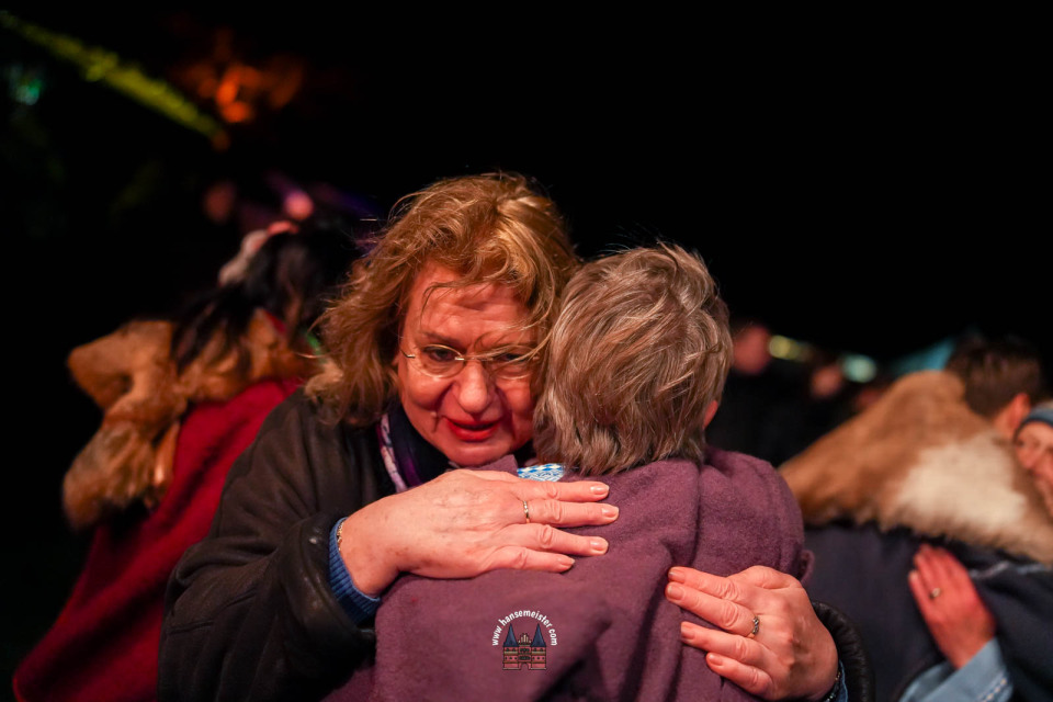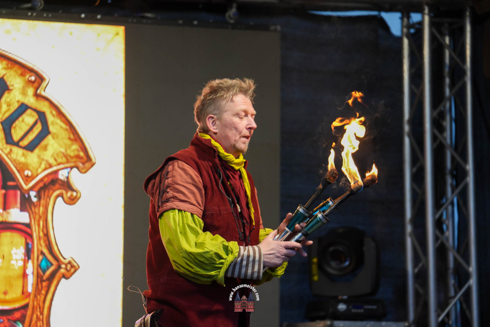 Ein besonderer Moment folgte direkt vor der Hauptbühne: Eine feierlich inszenierte Wikingerhochzeit zog die Aufmerksamkeit des Publikums auf sich. In historischer Gewandung gaben sich Karin und Met Ekki das Ja-Wort, begleitet von Musik von Frisia non Cantat und den Rufen der Menge. Der Flammenschein und die salzige Meeresluft machten die Zeremonie zu einem emotionalen Höhepunkt des Abends – kraftvoll, archaisch und zugleich zutiefst romantisch.